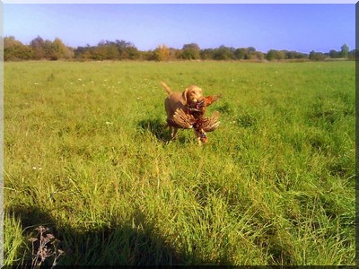 Átestünk életünk első nagyterítékes vadászatán. A 8,5 hónapos Tücsi remekelt, 18 fácánt szedett össze, nagyon gyorsan belejött, nagyon gyorsan rájött arra, hogy miről is szól az egész. Ismét nagyon nagyot nőtt a szememben, fantasztikus érzés egy ilyen szuper kutya gazdájának lenni!