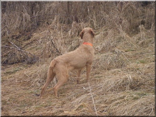 Tücsi found and pointed lots of birds on areas which were searched through before, and there was a wounded bird beside we all walked away, but the bird had no chance because finally Tücsi walked there too...