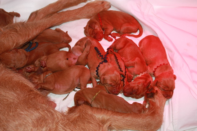 Eszter-Házi Drótos "C" boys and girls arrived today! All the 11 (!) puppies and Tücsi are doing very well!