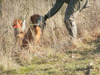 Meghívást kaptunk a szeptemberi Vas Megyei Vadásznapokra, hogy néhány perces bemutatóval szemléltessük a vizslák munkáját, amilyen alaposan csak lehet egy pár perces programban. Előbb egy rövid fajtaismertető következett, minden, a megjelent vadászkutyák fajtáját érintően, pár mondatban. Ezekután igyekeztünk minden, a vizslákat érintő feladatból egy rövidke ízelítőt adni mind a laikus, mind a szakavatott szemlélőnek. Terveink közt szerepelt úgy a vadmegállás, mint a légszimatos elhozás és a vonszalékmunka, víz hiányában vízi munkát nem terveztünk. Kitett fürjjel próbáltunk meg prezentálni egy szép vadmegállást, de a fürj sajnos nem így gondolta, ésTücsitől nem túl messze, mikor már a kutya éppen szél alá fordult, kelt. Tücsi gyönyörűen hasra vágta magát, majd ha már vadmegállás a feladat, ezt szerettük volna bemutatni, újból megkerestük a madarat, és sikerült is egy nagyon szép vadmegállást produkálnunk. Viszont ez egy kicsit több időbe telt, ezért már csak egy légszimatos elhozásra volt lehetőségünk, amit Tücsi tesójával, Csővárberki Olimpiával mutattunk be, aki idén Világgyőztes címet szerzett Stockholmban. Összességében jól sikerült a bemutatónk, tetszett a közönségnek is, nagyon sok elismerésben volt részünk, köszönjük szépen a meghívást!